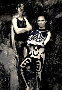 A la frontière entre l'Afrique du nord et l'Amérique du Sud, faux rejetons cachés d'Ivy et de Jello, Sheriff Mouloud y el Zorro Loco balancent un Rock'n'roll garage stupide, incompréhensible et destructeur. C'est le croisement parfait entre Tom Waits, Eddie Cochran et le punk le plus sauvage... Et ils sont juste deux mecs! (ou des vampires??) ... more